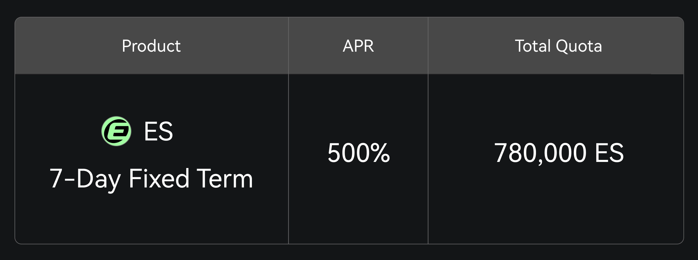 أطلق Gate كسب بسيط منتج ES لمدة 7 أيام ثابتة، مع عرض يصل إلى 500% APR. مع تخصيص محدود قدره 780,000 ES متاحة على أساس من يأتي أولاً يُخدم أولاً، لا تفوّت الفرصة.