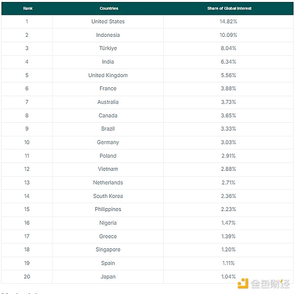 بشكل عام، حتى الآن هذا العام، احتلت أكبر 20 دولة مهتمة بالعملات المشفرة RWA 81.8% من التركيز العالمي على هذه السرد.