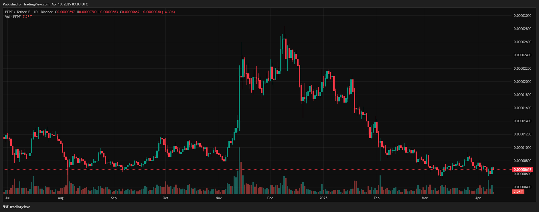 ! المصدر: TradingViewيمكنك رؤية أسعار PEPE هنا.