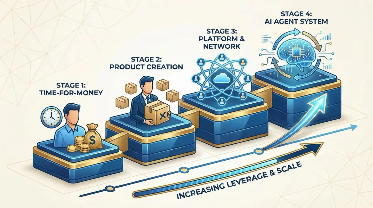 أما منطق التحول إلى وكيل (Agent) فهو مختلف تمامًا: دخلك لم يعد يعتمد على وقت العمل، بل على كفاءة تشغيل النظام.