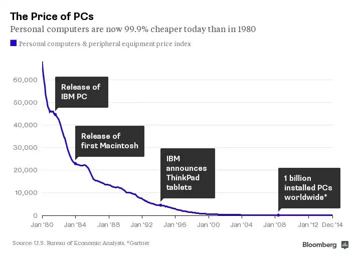 Hoy en día, el precio de las computadoras personales es un 99.9% más barato que en 1980: