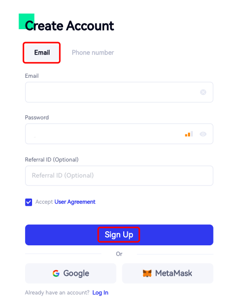 Langkah 3:Berikan semua informasi yang diperlukan(alamat email,kata sandi masuk,dll)。 Pastikan Anda menerima Perjanjian Pengguna。Kemudian klik “Daftar”。