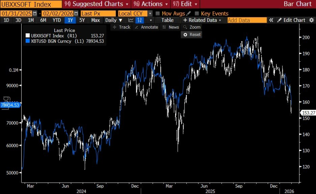 Investor Makro Global Macro CEO Raoul Pal menarik garis paralel antara penurunan Bitcoin dan penurunan saham SaaS. Menurutnya, penurunan pasar kripto mungkin tidak disebabkan oleh peristiwa terkait kripto.