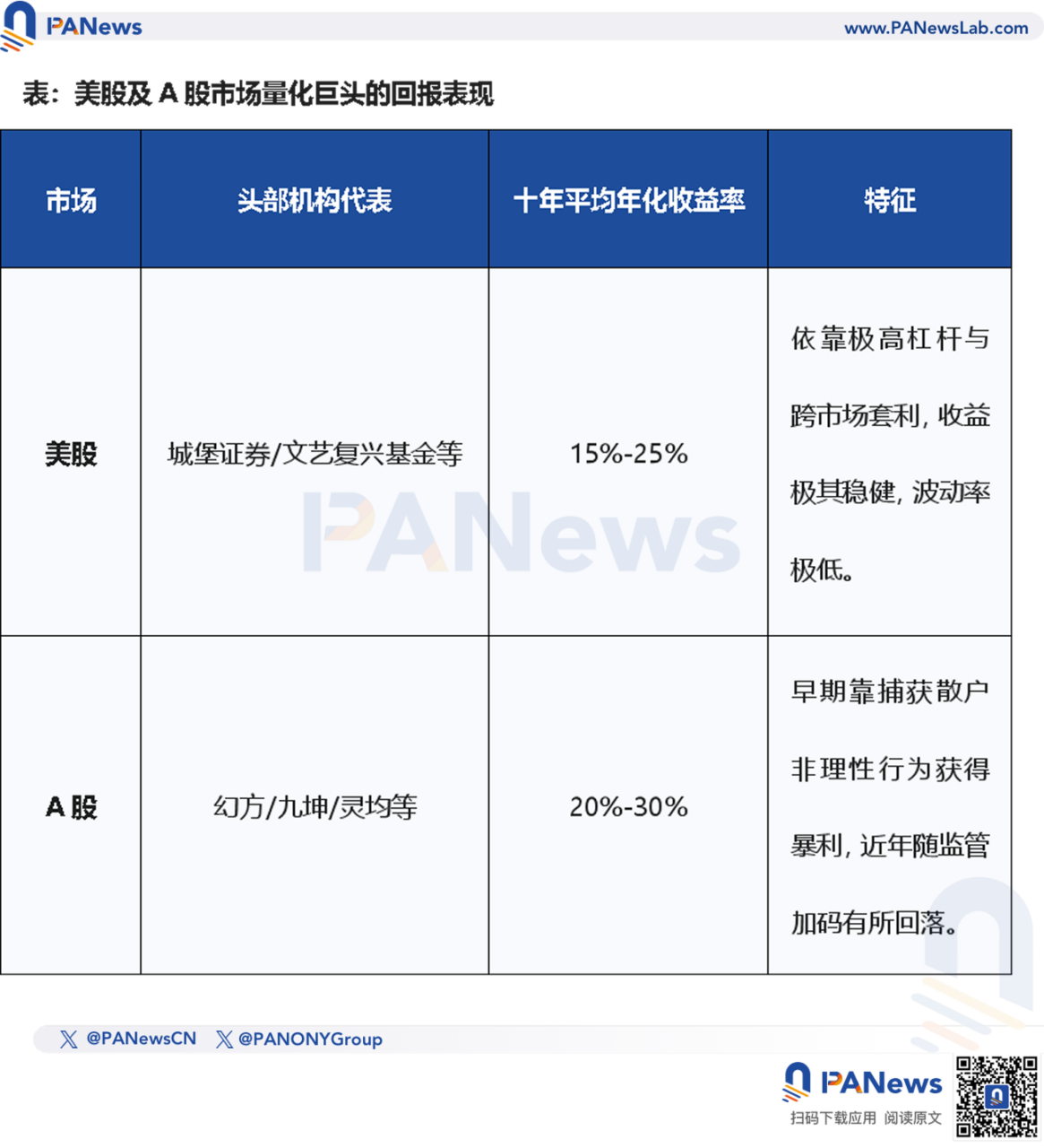 Jeff Park menambahkan bahwa mekanisme AP mungkin sedang melemahkan fungsi penemuan harga pasar spot Bitcoin. Masalah yang lebih dalam adalah mode “kas” itu sendiri. Bitcoin yang disimpan di tangan AP hanya berlangsung sangat singkat, sebagian besar waktu “dikunci” di dompet cold storage custodian. PANews berpendapat bahwa “kondisi terkunci” ini meskipun mengurangi pasokan yang beredar, juga memutus hubungan langsung antara ETF dan pasar spot. Dalam kondisi ideal, permintaan ETF harus langsung mengalir ke pasar spot. Tetapi keberadaan AP membuat proses ini menjadi perantara. AP sering kali melakukan hedging melalui kontrak futures, bukan membeli Bitcoin secara langsung. Akibatnya, meskipun ETF menunjukkan aliran dana bersih masuk, pasar spot sebenarnya tidak mengalami kenaikan pembelian nyata. PANews berpendapat bahwa ketika AP seperti Jane Street memanfaatkan pengecualian short selling dan melakukan hedging melalui futures, mereka sebenarnya hanya menciptakan permintaan sintetis untuk Bitcoin. Ini menyebabkan arus dana ETF mungkin tidak secara proporsional mendorong kenaikan harga spot, dan secara objektif membentuk “tekanan lembut” terhadap harga. Struktur ini menciptakan paradoks: semakin besar ukuran ETF, semakin terkonsentrasi hak penemuan harga Bitcoin di tangan beberapa AP, dan Jane Street adalah salah satu pusat kekuasaan ini. Industri kuantitatif menjadi batas atas kenaikan pasar? “Quant tidak mati, penurunan tidak berhenti.” Pandangan bahwa “industri kuantitatif menekan kenaikan A-shares” beredar luas di media sosial, bahkan perusahaan hedge fund besar seperti Fantasia yang mendukung DeepSeek juga dituduh: satu sisi menggunakan AI canggih untuk “menghormati negara” di bidang model, di sisi lain menggunakan algoritma “penyerangan derajat rendah” untuk “mengambil likuiditas” di pasar sekunder, tetapi pandangan ini lebih merupakan ekspresi emosional. Sebuah pertanyaan mendalam muncul: apakah investasi kuantitatif adalah “peradaban industri” pasar, atau “penindas tak kasat mata” yang menghambat pertumbuhan pasar saham? Saat ini, lebih dari 70% transaksi di pasar saham AS dilakukan secara algoritmik (termasuk perdagangan frekuensi tinggi, eksekusi algoritma, dan lindung nilai kuantitatif). Sebaliknya, penetrasi kuantitatif di pasar A-shares yang relatif muda telah melonjak dari sekitar 5% menjadi sekitar 25-30% selama sepuluh tahun terakhir. Lebih mengejutkan lagi adalah catatan dari para “pemburu terbaik”. Berbeda dari persepsi umum, meskipun proporsi kuantitatif dan hasil dari institusi top meningkat setiap tahun, selama sepuluh tahun terakhir, indeks S&P 500 naik sebanyak 260%, sementara indeks Shanghai-Shenzhen 300 hanya sekitar 60%. Ini menunjukkan bahwa penguatan institusi kuantitatif dan pertumbuhan pasar saham tidak selalu saling bertentangan. Alih-alih menghambat tren kenaikan pasar, kuantitatif justru secara mendalam mengubah kecepatan distribusi kekayaan. Di pasar AS, kuantitatif telah melakukan transformasi industri; di pasar A-shares, mungkin masih dalam masa sakit; dan di pasar kripto, raksasa kuantitatif sedang membangun kembali kekuasaan penetapan harga melalui alat struktural (seperti mekanisme AP ETF). “Perasaan penekanan” sebenarnya adalah ketidakberdayaan metode investasi tradisional menghadapi algoritma frekuensi tinggi dan rekayasa keuangan kompleks. Quant tidak akan hilang, melainkan menjadi bagian dari nafas pasar. Bagi para pelaku kripto, daripada mencari siapa “penjahat”, lebih baik mengikuti evolusi mekanisme ETF. Memahami logika kerja “mesin pencetak uang Wall Street” ini adalah pelajaran wajib bagi setiap investor. Teori konspirasi selalu lebih mudah menyebar daripada kebenaran karena sederhana, langsung, dan memenuhi emosi, tetapi pasar yang sebenarnya jauh lebih kompleks dan membosankan. Musuh sejati mungkin bukanlah suatu lembaga tertentu, melainkan ketidakpedulian kita terhadap mekanisme rumit dan keinginan kita akan jawaban sederhana.