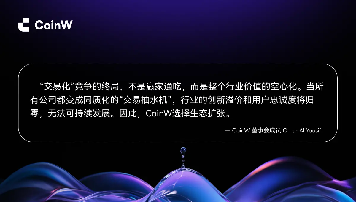 Jadi saat ini, yang bisa kita lihat adalah bahwa penyesuaian ini bukan arus utama industri, melainkan dicoba oleh beberapa proyek lama yang basis penggunanya cukup besar dan bisnis dasarnya relatif stabil. Contohnya, CoinW, bursa lama yang sudah memiliki jutaan pengguna dan volume transaksi harian yang stabil, memiliki cukup dana untuk membangun ekosistem yang bernilai jangka panjang tetapi hasilnya tidak cepat.