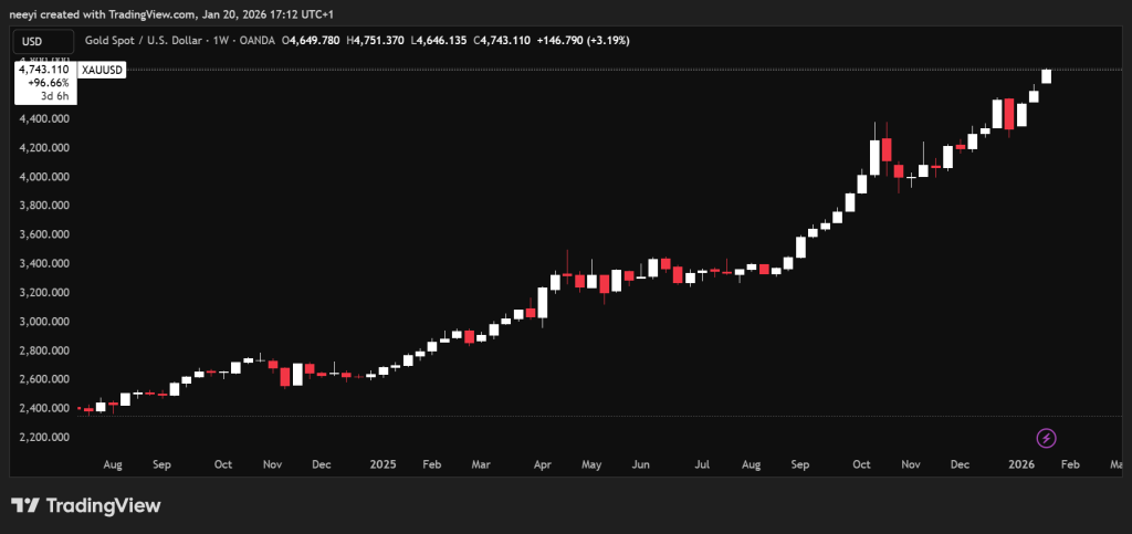 金価格は再び上昇しており、約4700ドルの新たな史上最高値に向けての推進は、最も古い価値の保存手段である金に世界的な注目を再び集めています。この急騰は孤立して起きているわけではありません。地政学的緊張の高まりやマクロ経済の不確実性の拡大が静かに資本の流れを変えつつあります。その変化は、BTC価格やビットコイン全体の今後についての馴染みのある疑問を呼び起こします。