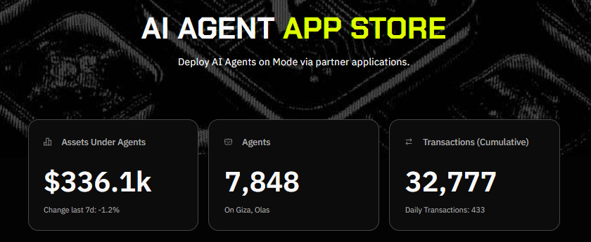 さらに、ModeはAIおよび代理に基づく多くのチームをサポートしています。ModeはAutonolas、Giza、Sturdyなどのプロトコルをそのエコシステムに統合するために大きな努力を払っており、より多くの代理の開発と取引の実行に伴い、Modeは急速に成長しています。