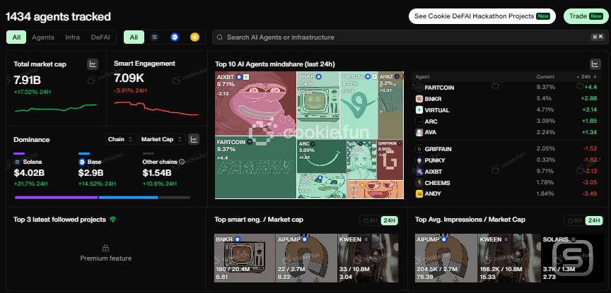 彼らのデータグループは、20のデータエージェントによってサポートされ、7TBを超えるリアルタイムのオンチェーンおよびソーシャルデータソースをカバーしており、市場の感情やオンチェーン分析に対する洞察を提供しています。彼らの最新のAIエージェント@agentcookiefunは、7%の容量で彼らのデータグループを活用し、その下で動作するさまざまな他のエージェントを利用して市場予測を提供し、新しい機会を発見しています。