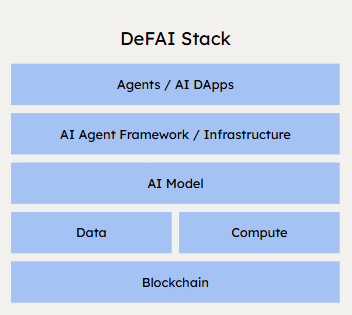 DeFAI は複数の階層にまたがっています。 ブロックチェーンは、AIエージェントがトランザクションを実行し、スマートコントラクトを実行するために特定のチェーンと相互作用する必要があるため、ベースレイヤーです。 さらに、データレイヤーとコンピュートレイヤーは、過去の価格データ、市場センチメント、オンチェーン分析からAIモデルをトレーニングするために必要なインフラストラクチャを提供します。 プライバシーと検証可能なレイヤーにより、機密性の高い財務データの安全性を確保しながら、トラストレスな実行を維持します。 最後に、プロキシフレームワークにより、開発者は自律型取引ボット、信用リスク評価者、オンチェーンガバナンスオプティマイザーなど、AIを活用した特殊なアプリケーションを構築できます。