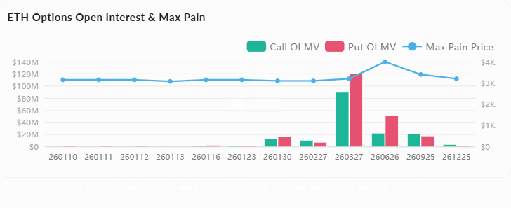 オプション博弈:未決済ポジション$73億、1月満期オプション最大ペインポイント$3,100、近期レジスタンス位置に対応。24時間オプション成交高が11.37%激増し、ボラティリティ期待が高まっています。