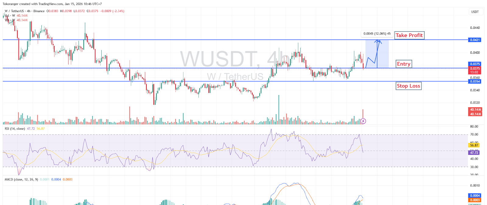ソース:TokocryptoBlogオリジナルタイトル:Sinyal Kripto 15 Januari 2026: Analisis Teknikal dan Proyeksi Pasarオリジナルリンク:# Sinyal Kripto Edisi 15 Januari 2026今年初のエディションでは、価格変動の可能性が高い3つの暗号資産に焦点を当てています。最新の市場データとテクニカル指標に基づき、この情報は*トレーダー*が変動する市場のダイナミクスの中で適切な意思決定を行うのに役立つことを意図しています。## 本日のニュース要約### 1. 米国上院の暗号資産法案に反対するプラットフォーム主要な暗号資産取引所のCEOは、現状の暗号資産法案を支持できないと明言し、断固たる声明を出しました:「悪い法案よりも法案なしの方が良い」。大手業界関係者は**革新を損なう可能性のある規制に対抗し始めており**、規制全体を拒否しているわけではありません。### 2. SUIネットワークのメインネット停止**SUI**は**メインネットの停止**を報告し、コアチームが調査を行う間、ネットワークは一時完全停止しました。安定性の問題は、特にスケールと複雑さが増す新しいL1にとって**主要な課題**です。**影響:****SUI**にとって短期的なネガティブなセンチメント。投資家はすでに実戦済みのL1をより選好し、市場は信頼性に焦点を戻しています。高TPSだけでなく、信頼性が重視される傾向です。### 3. Hyperliquidが24時間収益チェーンをリード**Hyperliquid**は**24時間の収益**で全チェーンをリードし、次いで**EdgeX**と**Solana**が続きます。オンチェーンのデリバティブ取引活動が**最大の手数料源**となり、他のユースケースを凌駕しています。**影響:****perpetual DEX & derivatives**セクターにとって強気材料。市場は活発なトレーダーを示しつつも、トレンドが強くなる前の段階です。*実用性 > ヒプ*のナラティブを支持します。### 4. Visa、BVNKと連携しステーブルコインインフラを構築**Visa**は**BVNK**と協力し、**資金調達と支払いをウォレットに直接行えるステーブルコインのインフラ**を構築しています。ステーブルコインはもはや暗号資産の実験ではなく、**新しいグローバル決済レール**となっています。**影響:****USDC、USDT**などの**ステーブルコイン**にとって構造的に強気。**ETH、SOL**などのブロックチェーン決済層にもプラス。TradFiとCryptoの融合が進んでいます。( 5. パキスタン、ドルベースのステーブルコインをグローバル決済に模索**パキスタン**政府は、国際送金やFXの効率化を目的に**ドル基準のステーブルコイン**を検討しています。新興国は、ステーブルコインを**送金・FXのソリューション**として注目し始めています。**影響:**新興市場におけるステーブルコイン採用に対して強気。暗号資産が投機対象ではなく、グローバルな金融インフラの一部としての役割を強化しています。取引や投資の意思決定を行う前に、全体的な分析を常に行うことを推奨します。## FIL/USDT )🔼 +9.58%(![])https://img-cdn.gateio.im/social/moments-d3c177b4a1-435d780808-8b7abd-e2c905###- **エントリー:$1.581**- **ストップロス:$1.498**- **テイクプロフィット:$1.734****FIL/USDT (4時間足)**は、現在かなり堅実な**強気**の状態を示しています。**出来高**は最近数時間で増加し始め、**RSI**は上昇し、50以上を維持しており、買い圧力が優勢です。また、**MACD**はすでに0ラインを超え、モメンタムの強気トレンドを確認しています。テクニカル的には、**レジスタンス突破**を果たしたばかりで、上昇の継続の可能性があります。シナリオとしては、**エントリーは1.581**、**ストップロスは1.498**、**テイクプロフィットは1.734**が考えられます。## AR/USDT (🔼 +5.68%)- **エントリー:$3.93**- **ストップロス:$3.78**- **テイクプロフィット:$4.16****AR/USDT (4時間足)**は、直前の上昇後に**調整局面**に入っているように見えますが、小さな反発の可能性も残っています。構造的には、**かなり急な下落**や**ダブルトップの兆候**、さらに**RSIのデスククロス**など、あまり良くないシグナルも出ていますが、全体的なトレンドは**50-60**の範囲内にあり、買いトレンドが完全に消えたわけではありません。**MACD**も**反転の兆し**を示し始めており、まだ確定はしていませんが、**逆転の可能性**を示唆しています。この状況下で、**エントリーは3.93**、**ストップロスは3.78**、**テイクプロフィットは4.16**を検討しつつ、売り圧力の再強化には注意が必要です。## W/USDT (🔼 +12.06%)- **エントリー:$0.0375**- **ストップロス:$0.0354**- **テイクプロフィット:$0.0421****W/USDT (4時間足)**は、現在かなり強い**売り圧力**を示しており、売りの出来高増加により下落の継続リスクが高まっています。**RSI**はすでに**46**付近まで下落し、買い手の勢いが失われつつあります。一方、**MACD**はまだ強気ゾーンにありますが、ヒストグラムの緑色が薄れてきており、逆転の兆しともなり得ます。この状況では、**W**は調整局面に入りやすく、反発の可能性も残っています。トレードシナリオとしては、**エントリーは0.0375**、**ストップロスは0.0354**、**テイクプロフィットは0.0421**を