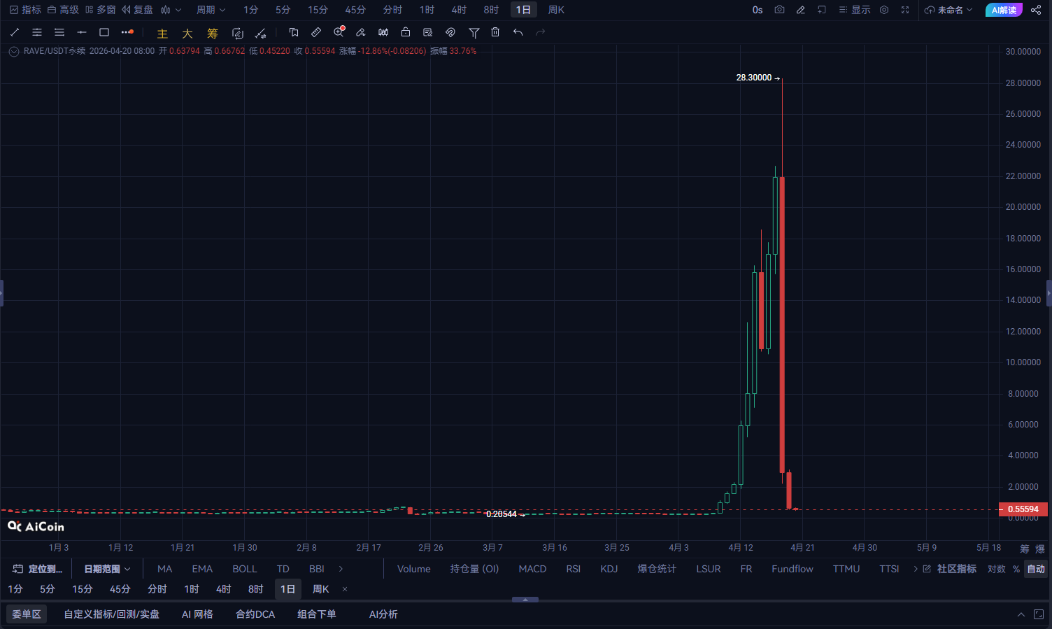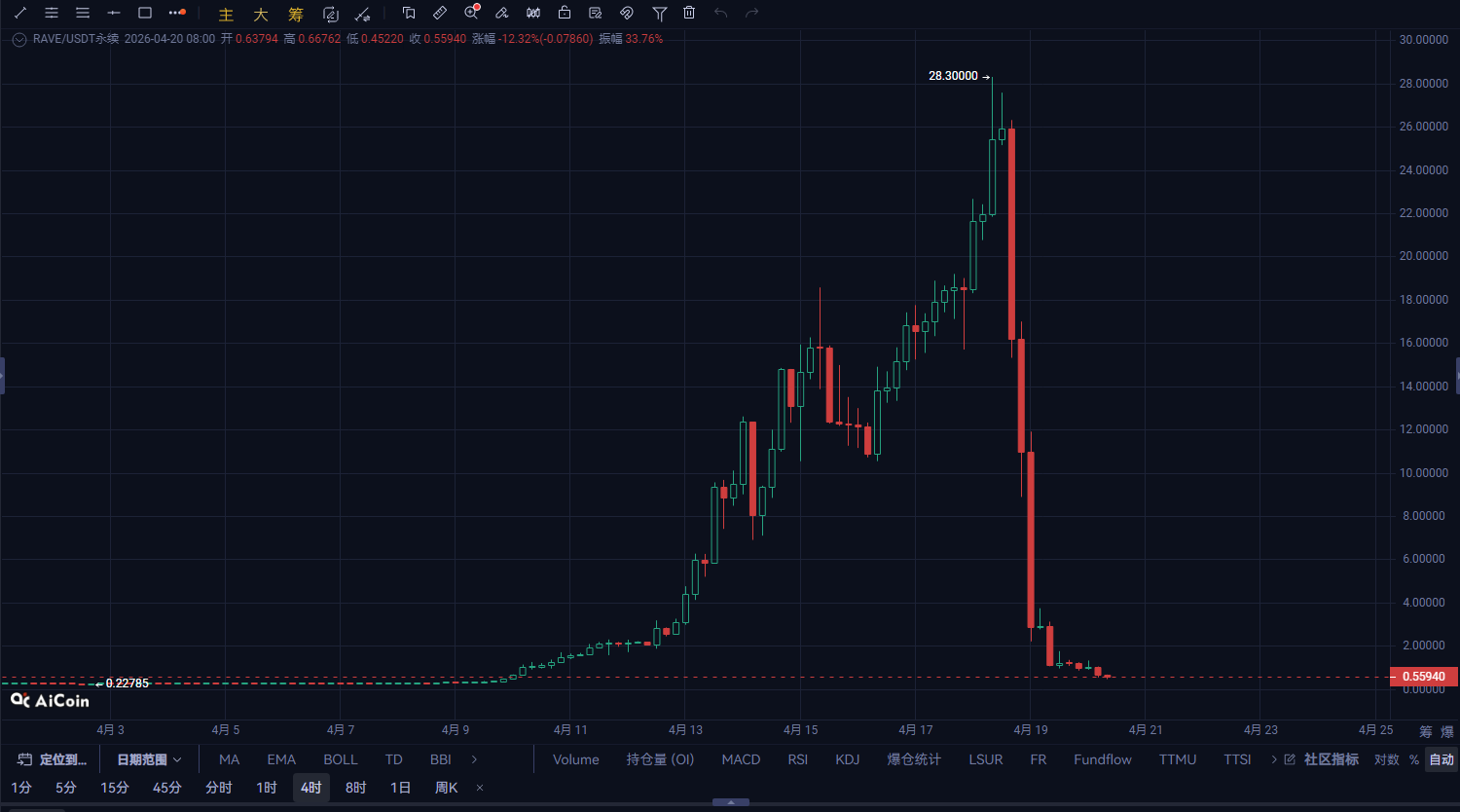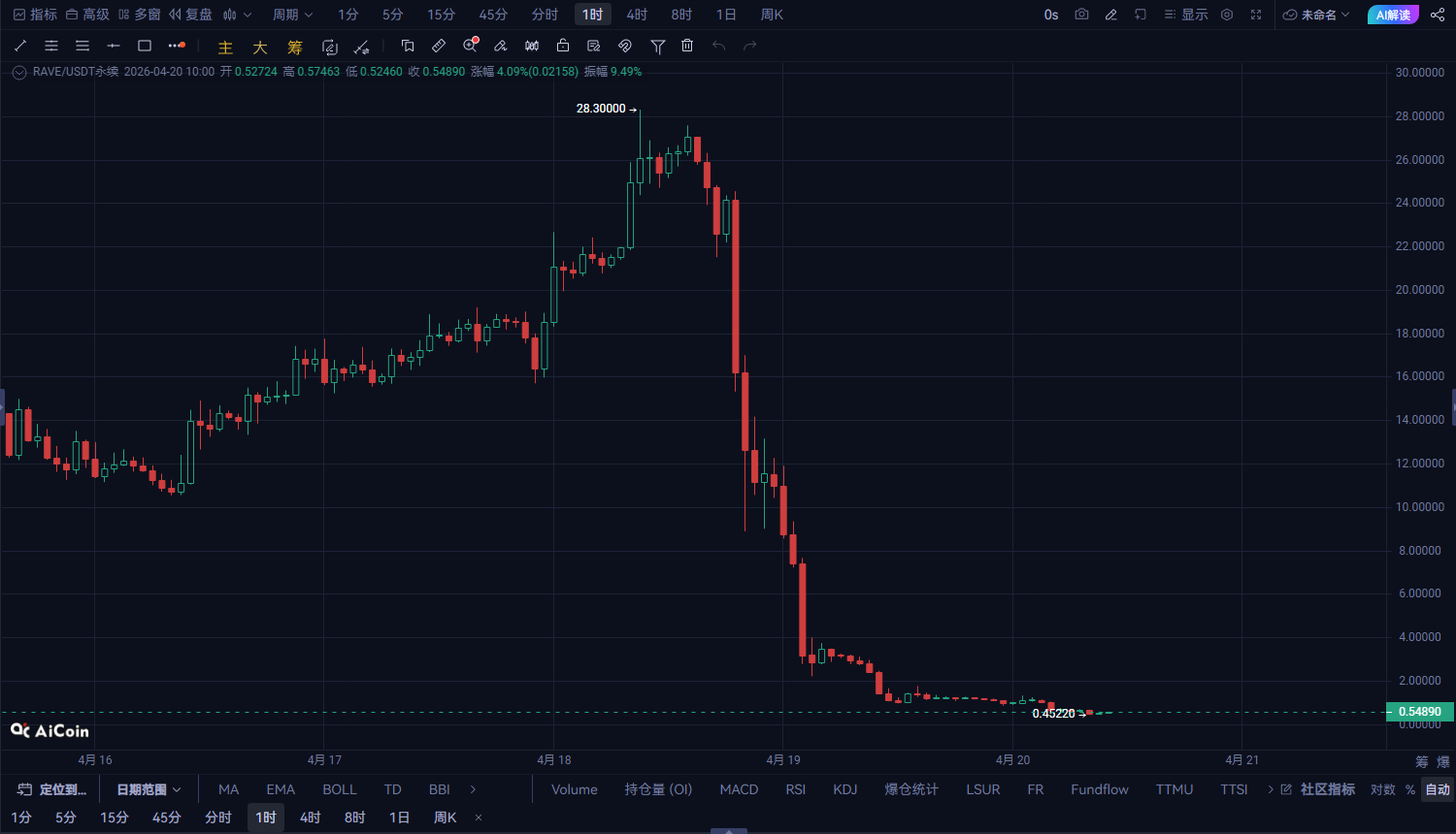 現在の価格:0.5489RAVEの現在の構造は非常に典型的です——単なる調整ではなく、上昇後の「高値コントロール+方向選択エリア」。この位置はしばしば次の意味を持ちます:さらなる加速によるメイン上昇を続けるか、または深い調整局面に直接入るか。サイクルを直接分解し、主力の意図を見極める。一、日足レベル:トレンドは依然として維持されているが、上昇ペースは明らかに鈍化日足は依然として強気構造を保っているが、細部はすでに変化し始めている:高値圏で連続する小実体のローソク足 → 上昇力不足上ヒゲの増加 → 売り圧力が徐々に顕在化MACDの赤柱が短縮、モメンタムの衰退が明らかRSIは高値から中高区間に下落日足は「強気は死なず、しかし攻撃は一時停止」、高値圏の博弈エリアに入る。二、4時間足:調整収束、反転のカウントダウン開始4時間足はすでに明確な収束構造を形成しているこれは典型的な:収束三角 → 方向選択の準備技術的シグナル:ボリンジャーバンドが極端に収縮(反転の前兆)MACDが0軸付近で反復的に絡み合う出来高が持続的に縮小(主力のコントロールが明らか)三、1時間足:短期的には弱気、主力が下方の流動性を試す短周期から見ると、ペースはすでに弱まっている:短期移動平均線システム(MA20/MA60)を下抜け反発に出来高なし → 強気の引き受け不足MACDは弱気ゾーンに入り、徐々に出来高増加構造の特徴:弱い反発 + 段階的な下落【RAVE今日の空売り戦略】エントリー位置:0.5489第一利確:0.53225第二利確:0.51599ストップロス位置:0.55985