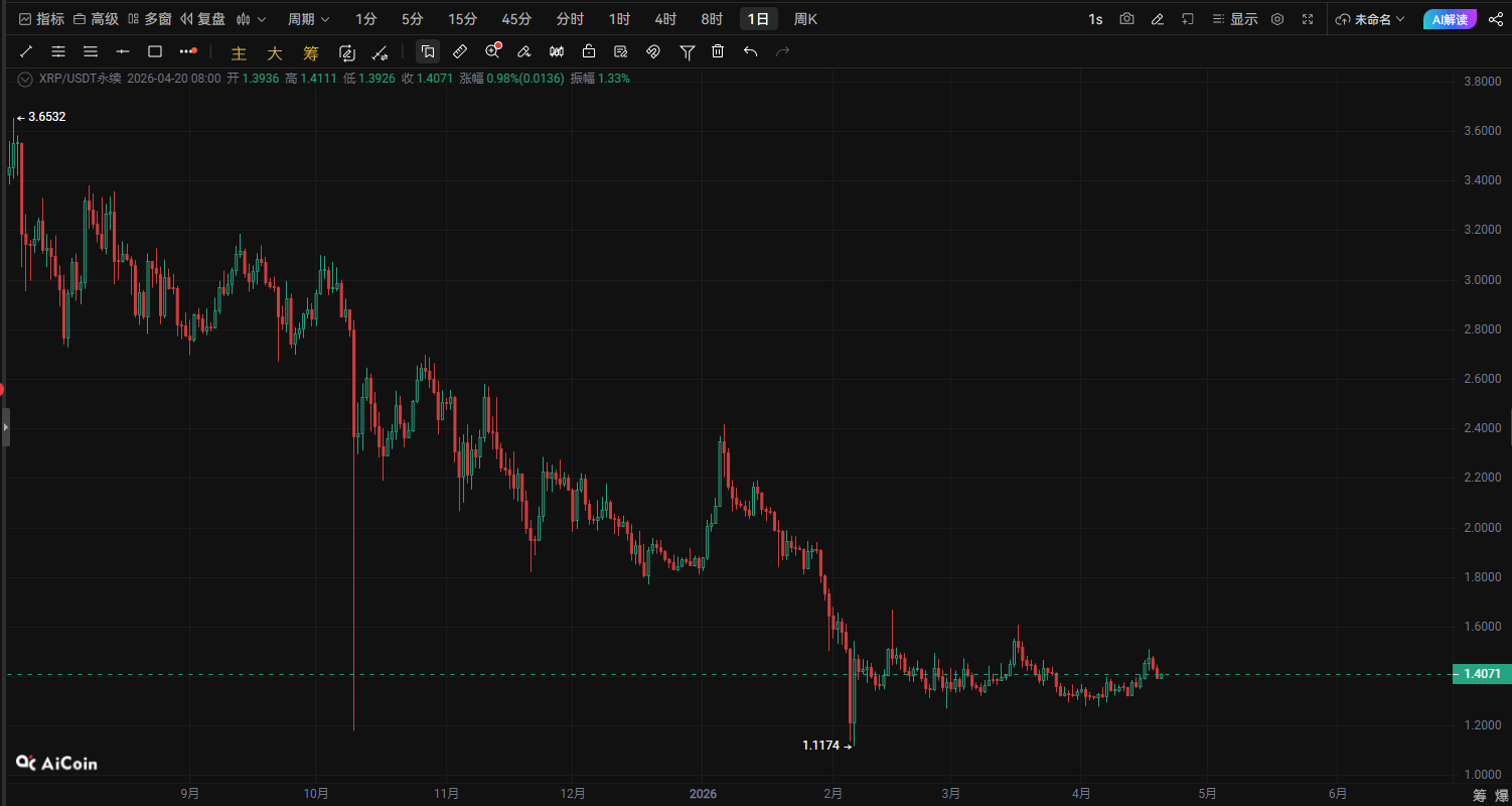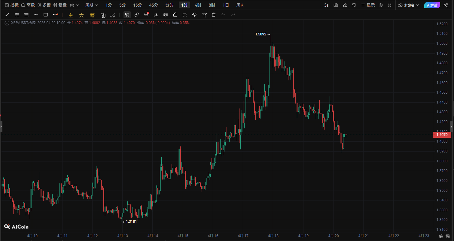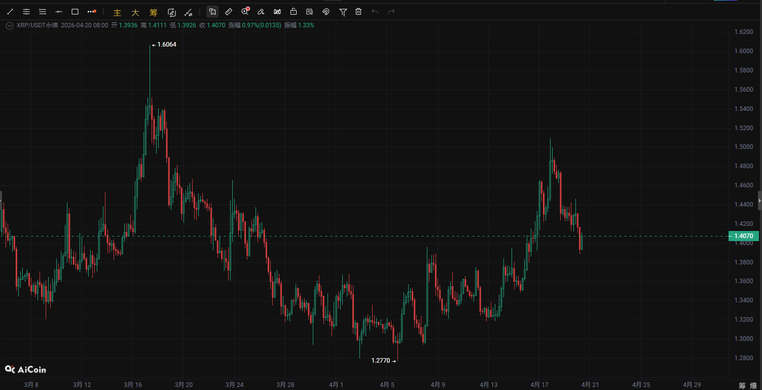 XRPの重要な買いと売りの決戦!1.40ドルが運命の分水嶺、次のトレンドはまもなく爆発か|4月20日の相場深掘り分析