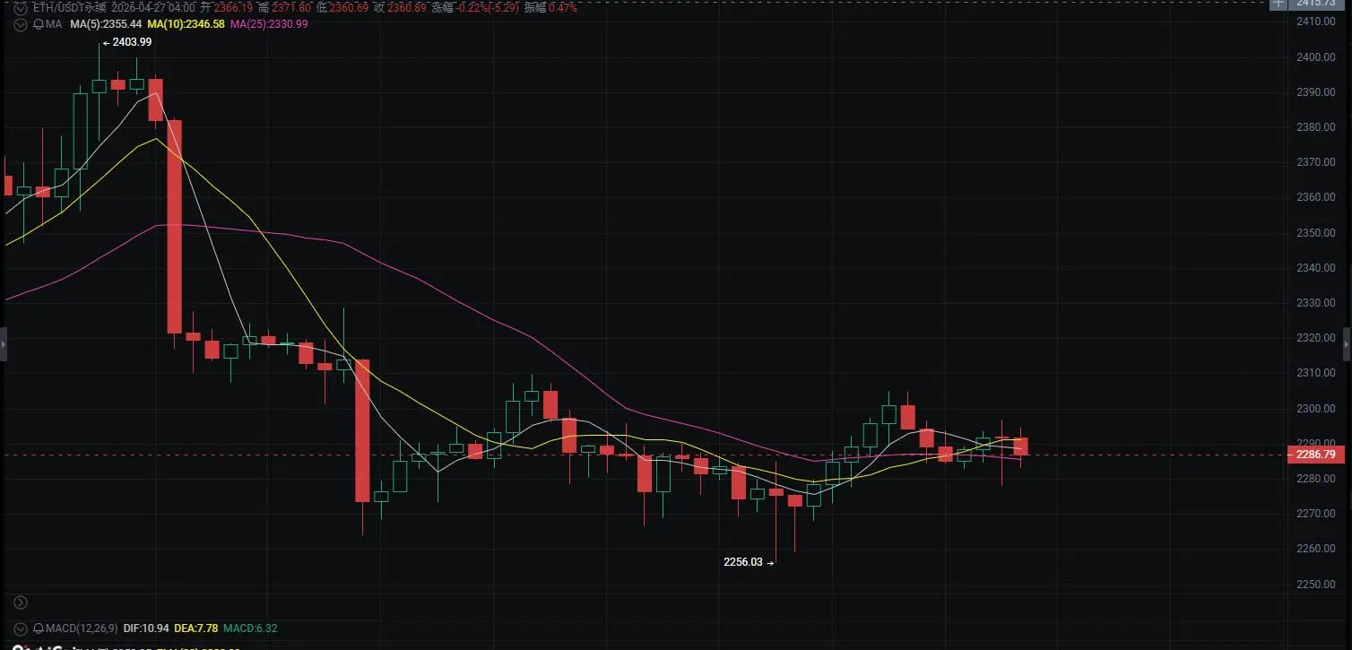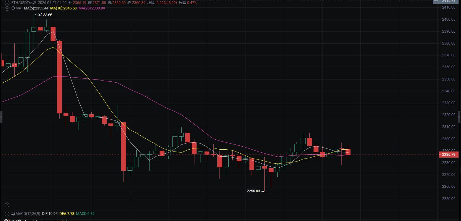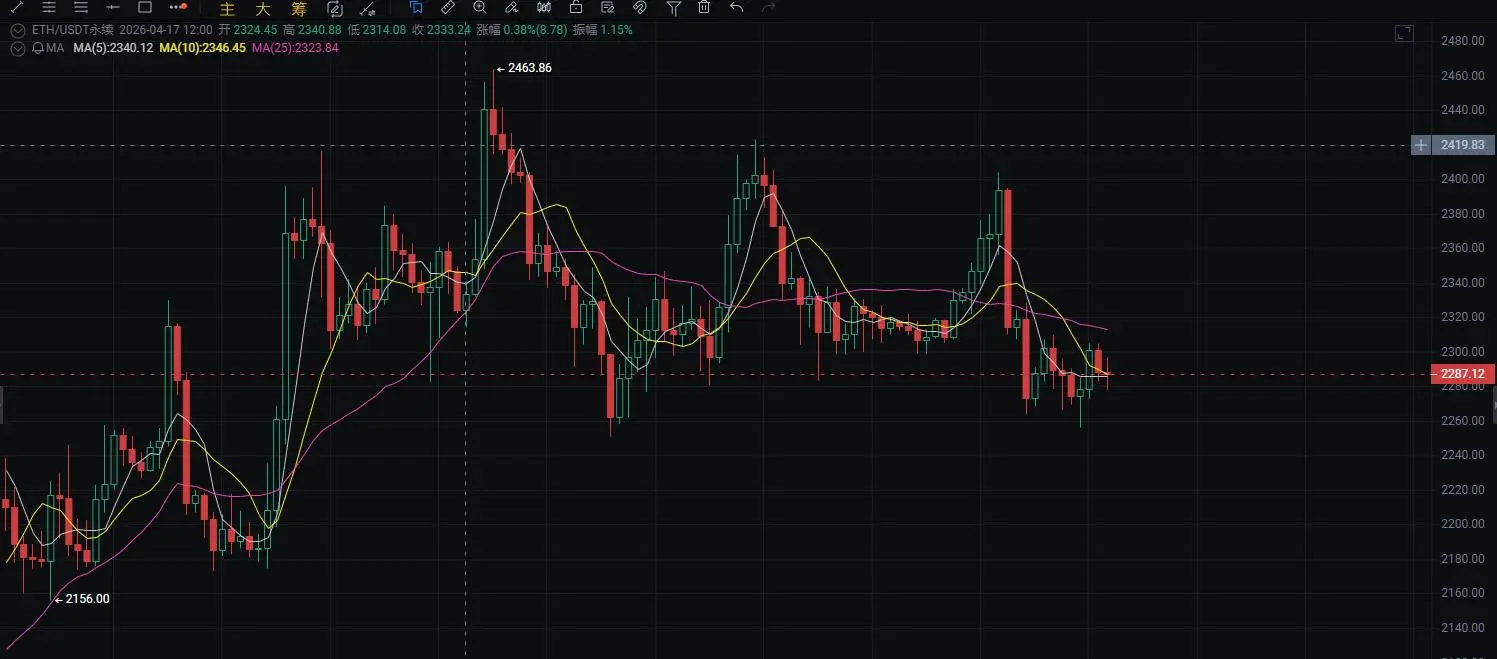 1時間足(短期シグナル)ETHは最近、揺れながら上昇する構造を形成し、安値を徐々に引き上げ、反発の勢いを強めているローソク足チャートはサポート位置が堅固であることを示し、価格は1時間移動平均線のサポートの下で推移している短期周期の移動平均線は上向きに交差しており、短期的な強気トレンドを示している結論:短期的には買い優勢、反発の勢いが明らかである4時間足(長期トレンド)4時間足から見ると、ETHの価格は揺れながら上昇チャネル内にある下のサポートレベルは2260付近、上の抵抗エリアは2300〜2320価格は強い売りシグナルを示しておらず、全体的なトレンドは強気市場に偏っている結論:揺れながらも買い優勢、強気の見方を維持する本日の実行戦略(直接注文)操作:市場価格で買い ETH @ 2287第一利確:2310第二利確:2337損切り位置:2255