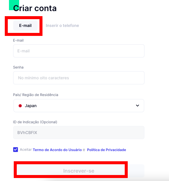 Passo 3: Forneça todas as informações necessárias (endereço de e-mail, senha de login, etc.). Certifique-se de aceitar o Contrato do Usuário. Em seguida, clique em “Inscrever-se”.