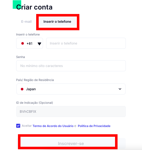 Passo 4: Você também pode se registrar com seu número de telefone. Em caso afirmativo, forneça todas as informações necessárias (número de telefone, senha de login, etc.). Certifique-se de aceitar o Contrato do Usuário. Em seguida, clique em “Inscrever-se”.