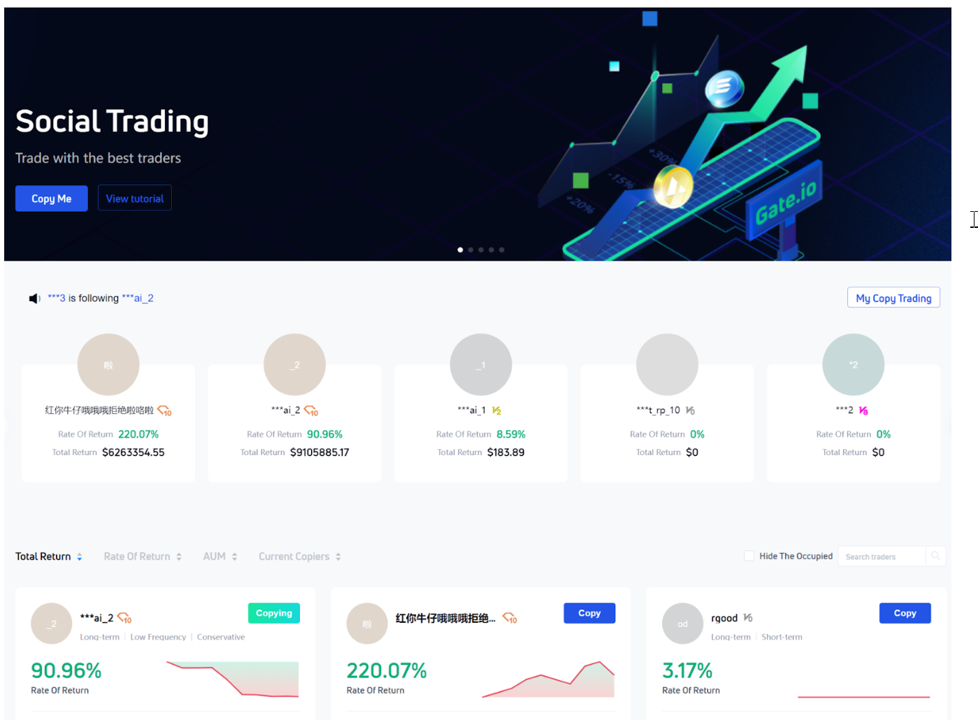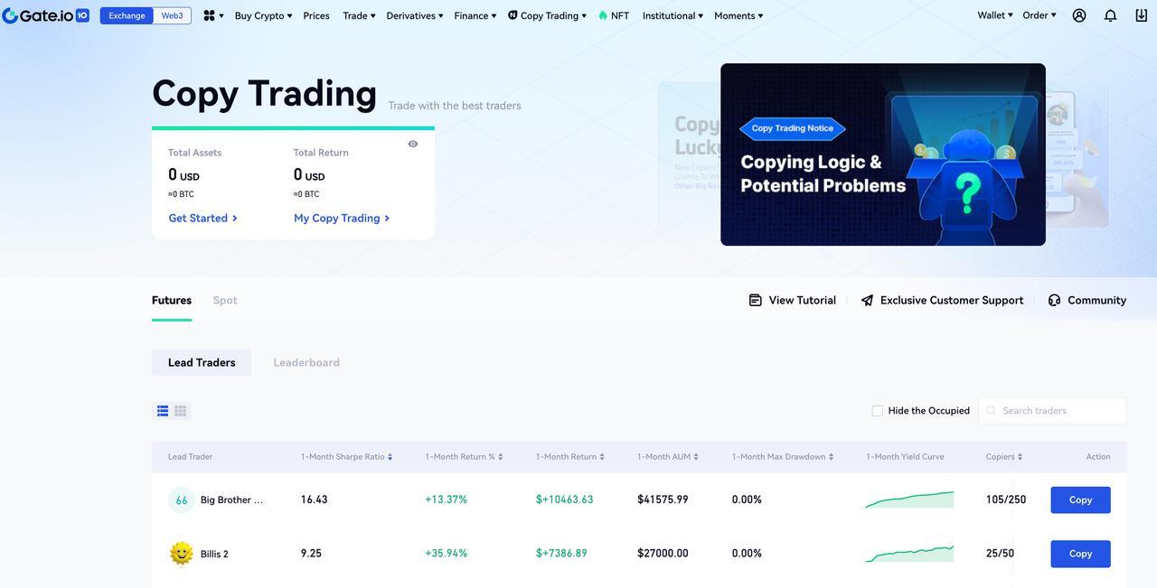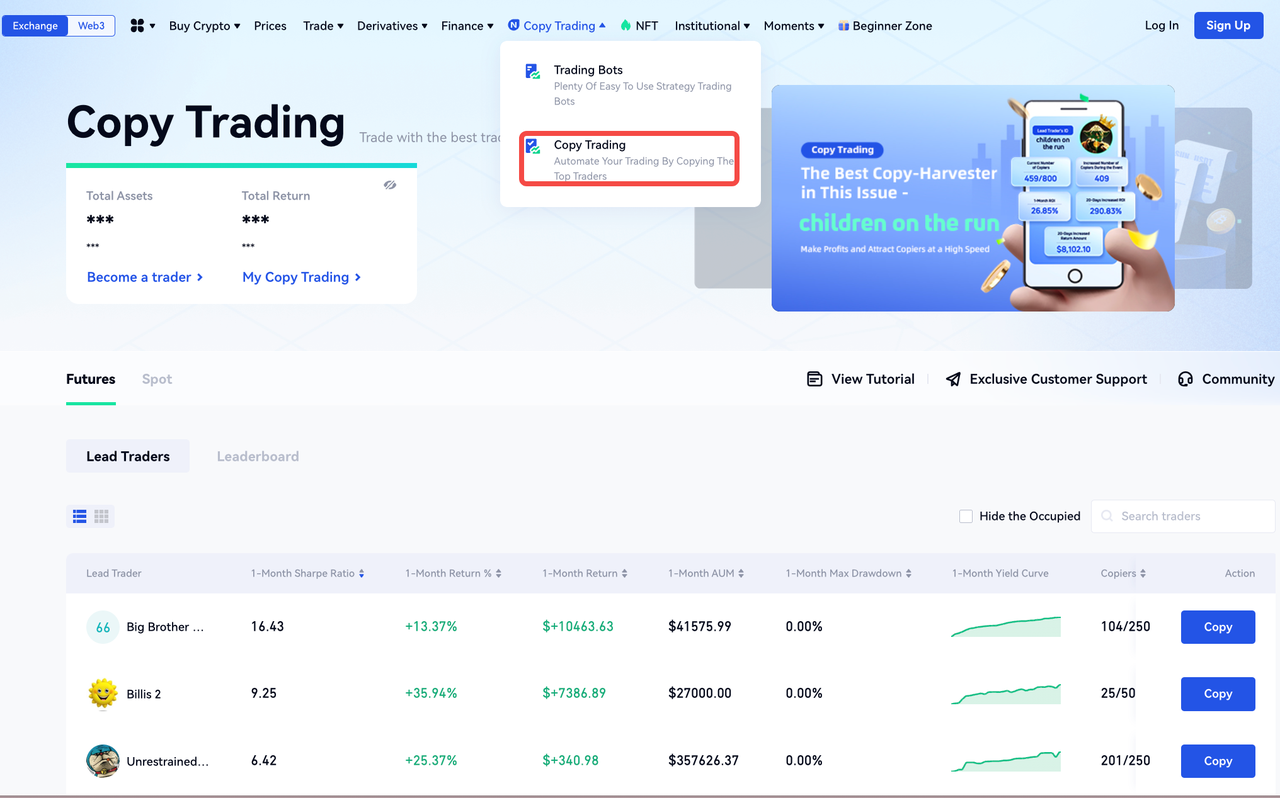 <1> Enter the Copy Trading page, screen out excellent traders.