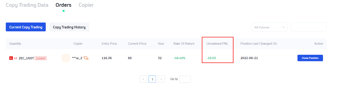 Note that the unrealized P&L currently displayed on the copy page is not included in the copy earnings.