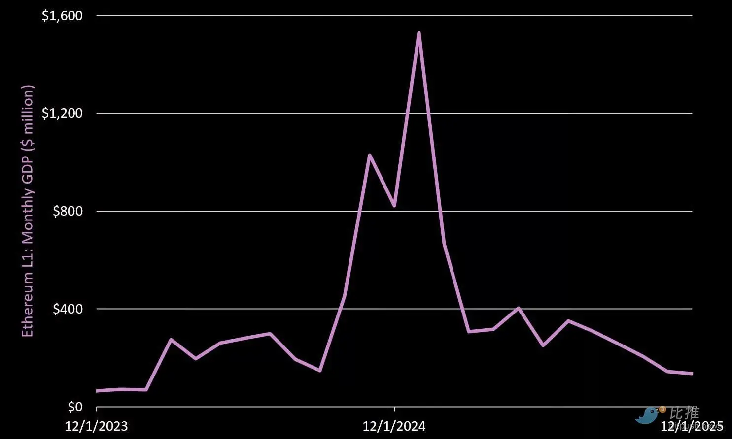 Para comparação, as aplicações L1 do Ethereum geraram um PIB de 2,3 mil milhões de dólares no Q4.