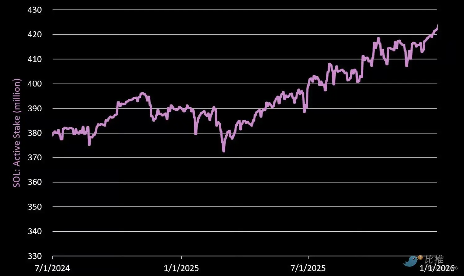 Staking ativo: até 31 de dezembro de 2025, 421,7 milhões de SOL estavam em staking (75% do circulating supply), um aumento de 3,5% em relação ao trimestre anterior.