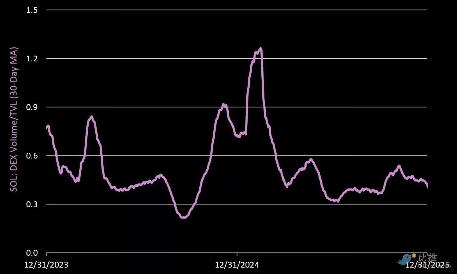 Atualmente, a rede Solana parece estar entrando num período de reinicialização cíclica. A procura especulativa na cadeia continua a diminuir, enquanto novos casos de uso e a integração com o finanças tradicionais (TradFi) ainda não preencheram essa lacuna. O desempenho operacional do Q4 diminuiu significativamente: a receita total (REV) caiu 43%, atingindo o nível mais baixo desde o Q3 de 2023; a taxa de retorno real na cadeia caiu 56% para 0,46%. Ao mesmo tempo, os fundamentos deterioraram-se com a atividade dos utilizadores, enquanto os custos operacionais aumentaram drasticamente em relação às taxas dos utilizadores.