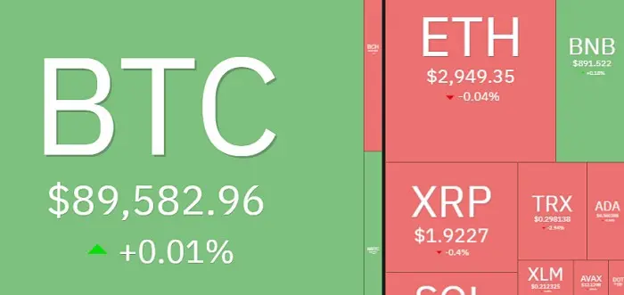 Bitcoin mantém-se em torno de 89.500 dólares… Altcoins mistos
