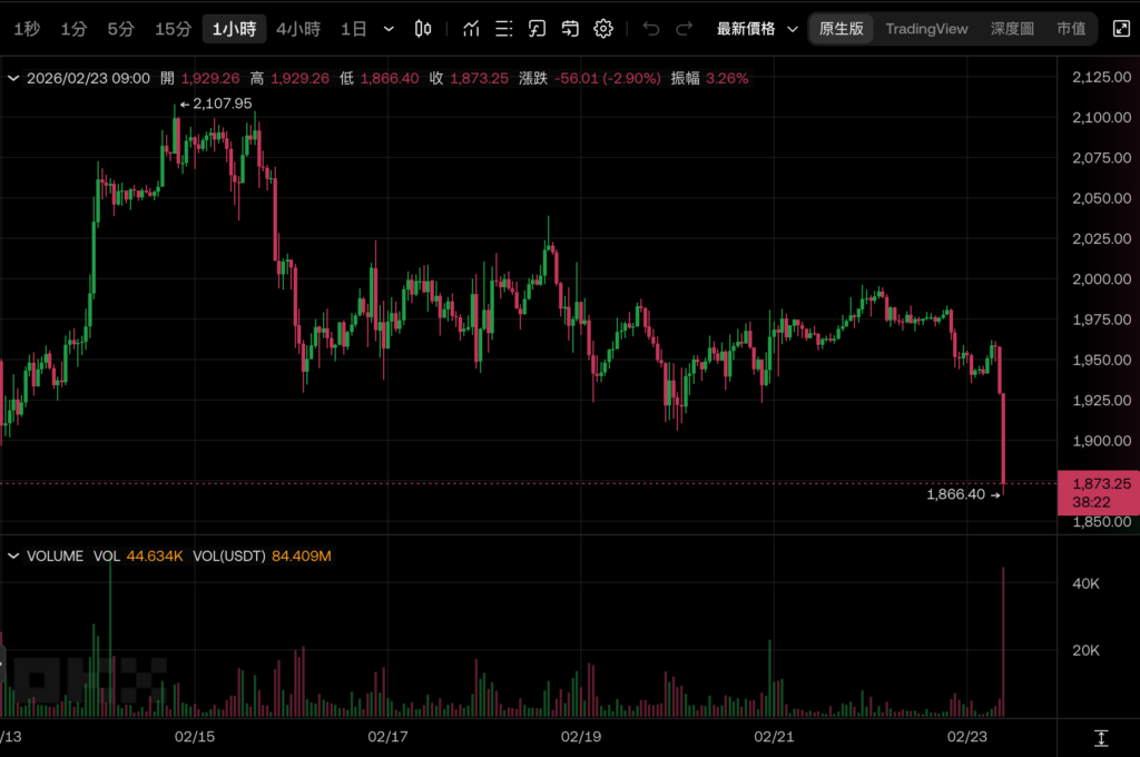 ETH 15 minutos de queda rápida de 1,42%: liquidação de posições longas alavancadas e desequilíbrio de ordens provocam ressonância de pressão vendedora de curto prazo
