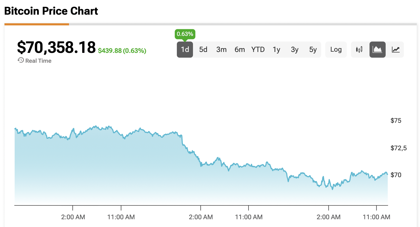 No momento da redação, o Bitcoin está cotado a $70.358,18.