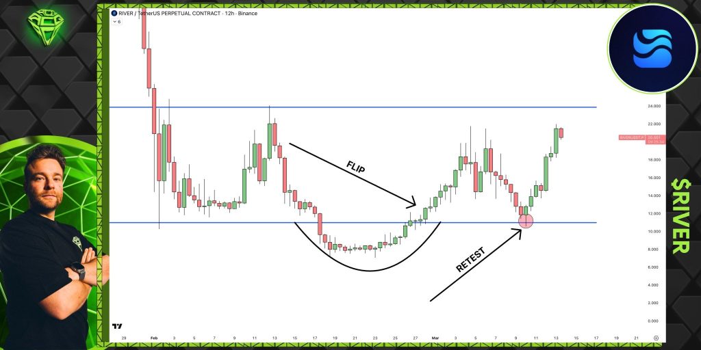 What matters now is what happened next. Instead of reversing back into the range, the RIVER price held above the breakout level and began consolidating in a new, higher range. This is the textbook behavior that Sjuul references.