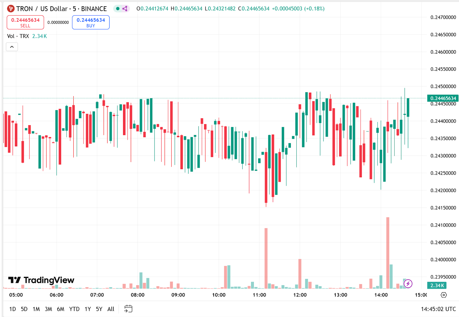 ! Chart 1 – ราคาสด TRX/USDT เผยแพร่บน TradingView วันที่ 25 เมษายน 2025