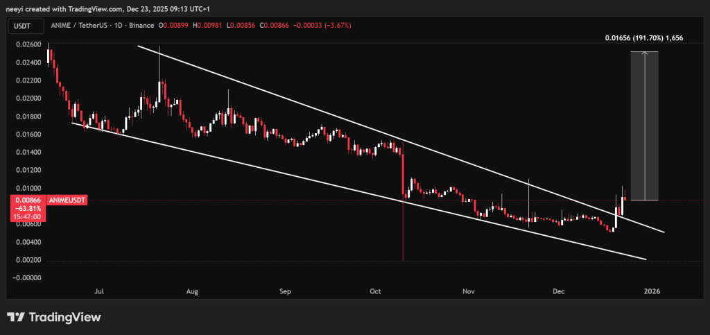 ! Animecoin (ANIME) ราคามีความน่าประทับใจในช่วงนี้ แม้ว่าราคาของคริปโตอื่น ๆ จะประสบปัญหา โทเค็นนี้มีการเพิ่มราคามากกว่า 60% ในช่วง 3 วันที่ผ่านมา การดูกราฟอย่างรวดเร็วแสดงให้เห็นว่าราคาได้ทะลุออกจากช่องขาลงที่มีมานานหลายเดือน นี่เกิดขึ้นเมื่อสามวันที่แล้วด้วยการเพิ่มราคา 40% ภายในวันเดียว วันถัดไป ราคาทดสอบแนวรับที่แตกออกเป็นแนวรับใหม่ได้สำเร็จ. การเคลื่อนไหวนี้ได้นำผู้ซื้อเข้ามาเพิ่มเติมซึ่งตอนนี้สนใจในโทเค็นและหวังที่จะเข้าร่วมการขี่กระทิงในช่วงท้าย หากพิจารณาจากความสูงของช่องขาลง อาจคาดหวังการเพิ่มขึ้นมากกว่า 190% จากระดับปัจจุบันที่ประมาณ $0.0086 ก่อนที่จะมีการดึงกลับครั้งใหญ่หากแรงผลักดันในเชิงบวกยังคงดำเนินต่อไป. การหลุดออกเมื่อเร็ว ๆ นี้เปลี่ยนแปลงพฤติกรรมของราคา ANIME บนกราฟ ราคาใช้เวลาหลายเดือนในการเคลื่อนไหวต่ำลงภายในช่องทางที่ลดลง ซึ่งมักจะเป็นสัญญาณของการกระจายที่ช้าและความสนใจที่ลดลง โครงสร้างนั้นสิ้นสุดลงเมื่อผู้ซื้อผลักดันราคาให้สูงกว่าขอบเขตด้านบนด้วยการติดตามที่แข็งแกร่ง. !