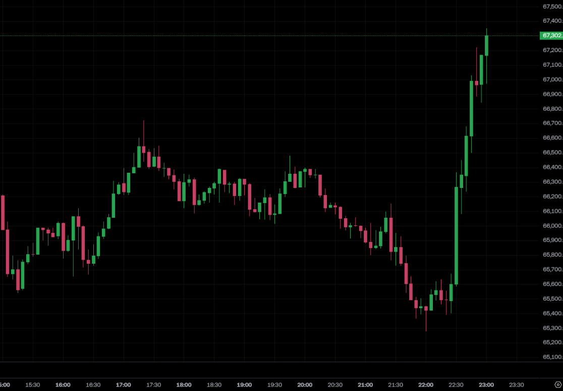 หลังจากประกาศข่าว ตลาดคริปโตเคอร์เรนซีตอบสนองอย่างชัดเจน บิทคอยน์ปรับตัวขึ้นทันที ทะลุระดับ 67,000 ดอลลาร์สหรัฐ ขณะที่อีเธอเรียมก็แข็งแกร่งขึ้นเช่นกัน ทะลุ 1,980 ดอลลาร์สหรัฐ