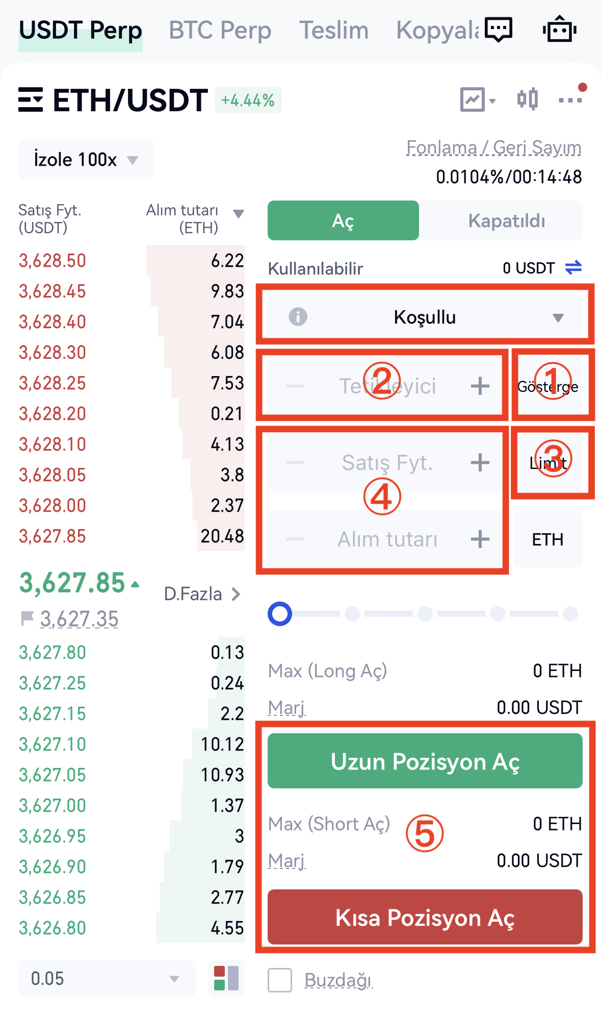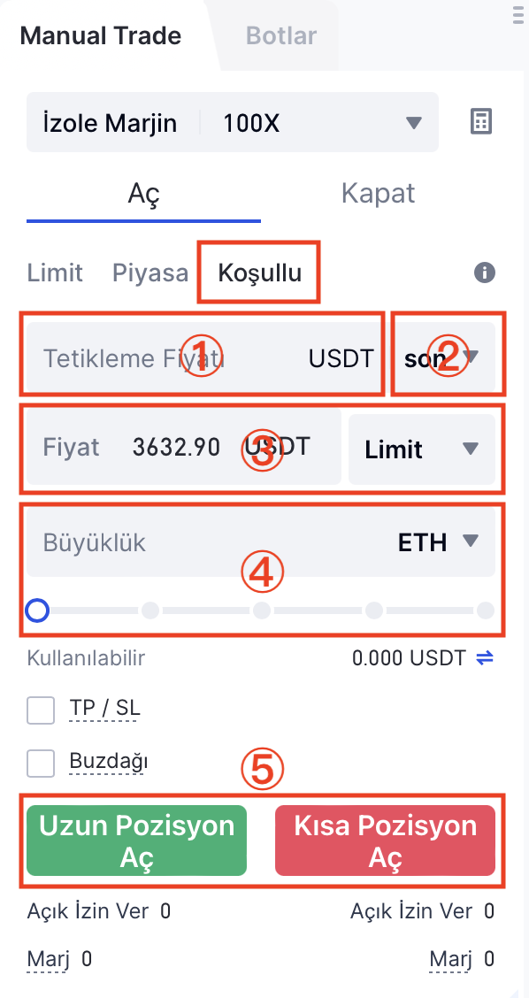 - Koşullu emir stratejik bir düzendir. Sadece gösterge fiyat/son fiyat tetikleme fiyatına ulaştığında, önceden belirlenmiş olan emir fiyatı, miktarı ve tarafına göre emir verilir.