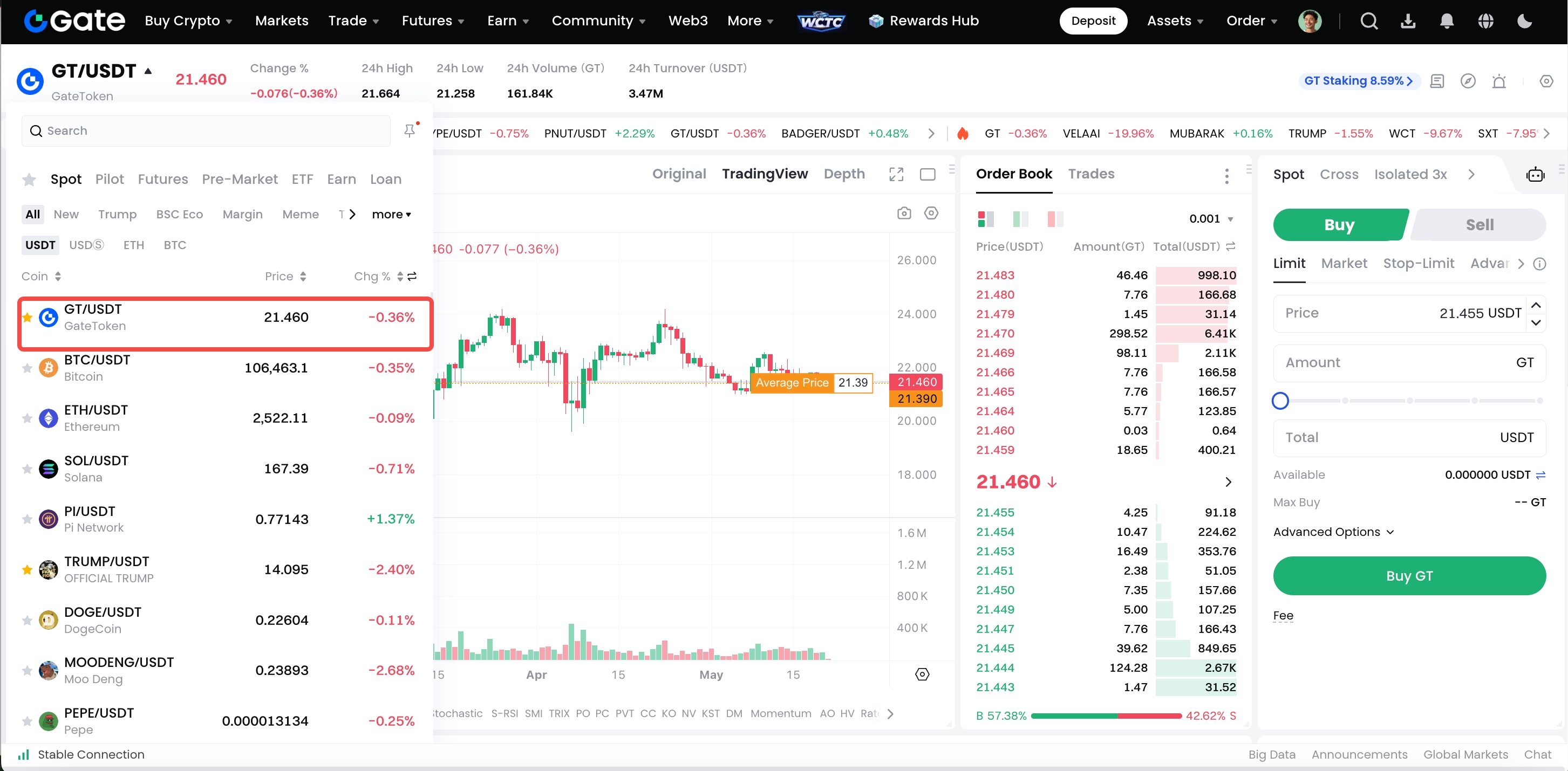 Adım 2: Sol taraftaki Piyasa bölümünde ticaret yapmak istediğiniz çifti arayın ve girin.