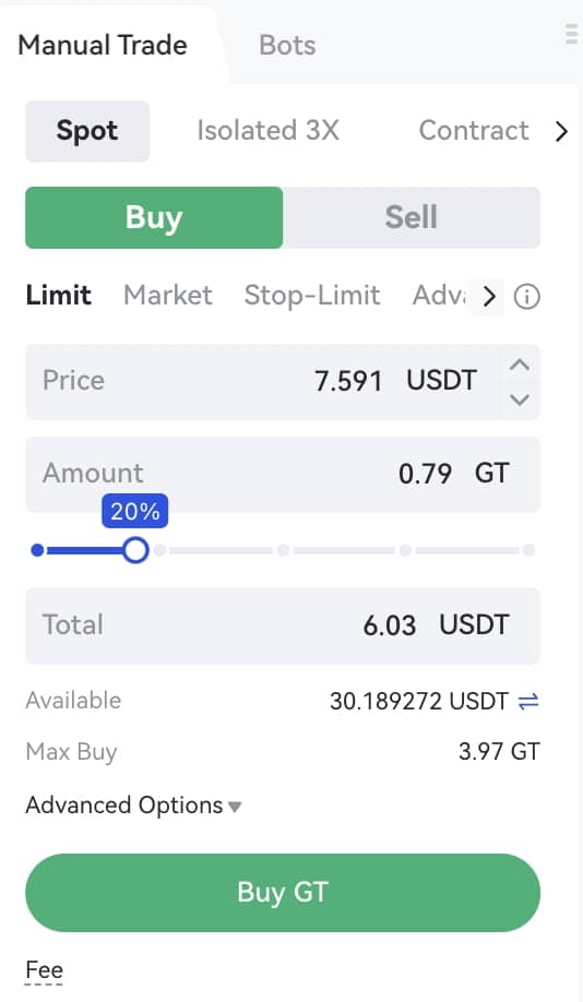 Adım 3: En üst sağdaki 'emir verme' bölümünde alım/satım fiyatını ve alım/satım miktarını/toplamını ayarlayın. Daha sonra 'Al'/'Sat' düğmesine tıklayın.