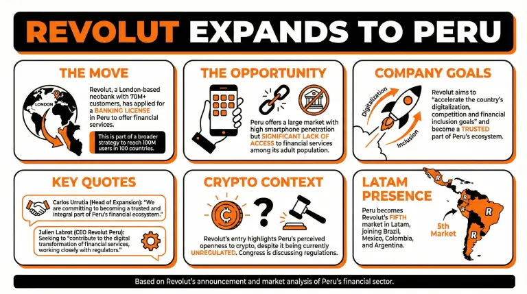 Revolut’s move to enter Peru’s financial market highlights the perceived openness of the Peruvian market to the crypto industry. While cryptocurrencies are still unregulated in Peru, the Peruvian Congress is discussing regulations to solve this gray area issue.