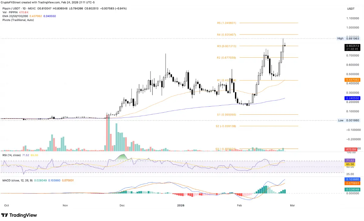 However, investors should remain cautious: if the daily candle closes clearly below $0.8012, selling pressure could re-emerge, potentially pulling PIPPIN back toward the nearest support at the R2 pivot around $0.6770.