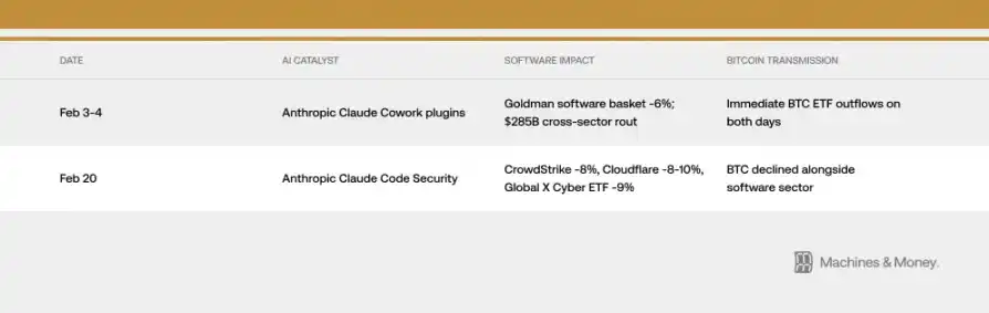 Yet, the transmission mechanisms can sometimes be surprisingly direct. For instance, in February 2026, two AI product launches via the same institutional channels impacted Bitcoin prices—completely unrelated to fundamentals. A single AI product announcement can move BTC through institutional pipelines—an illustration of the correlation mechanism in action.