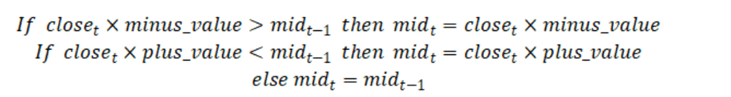 Якщо остання ціна закриття, помножена на minus_value, більша за попередню середню лінію каналу, оновіть останню середню лінію каналу; інакше остання середня лінія каналу дорівнює попередньому значенню.