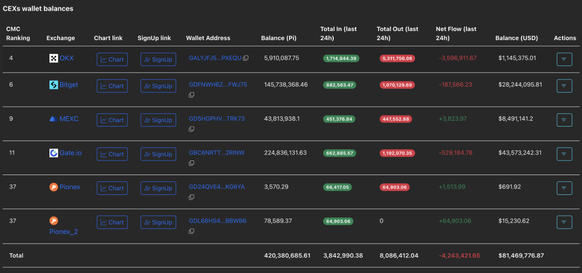 Дані з PiScan показують, що централізовані біржі зафіксували зменшення на 4,24 мільйони PI за останні 24 години, що свідчить про значний обсяг виведень. Це свідчить про сильний попит, що допомагає ціні токена залишатися вище $0,1900 наприкінці дня, обмежуючи тиск на зниження. Стабільна тенденція зменшення резервів на біржах обіцяє зменшити пропозицію на ринку, що потенційно сприятиме відновленню PI у найближчому майбутньому.