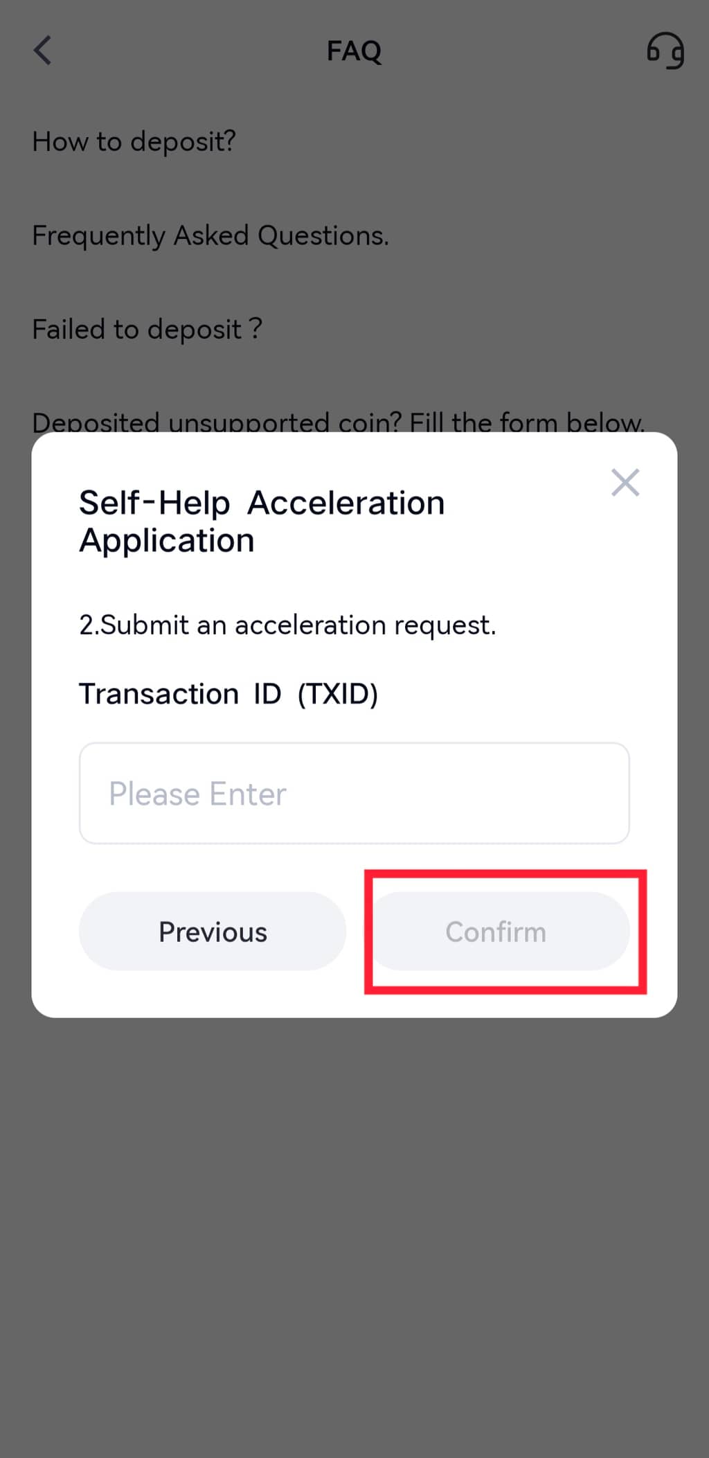 Nhập ID giao dịch (TxID) của khoản nạp và nhấn “Xác nhận”.