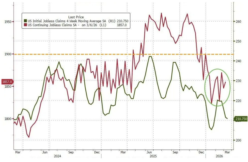 Tuy nhiên, số người tiếp tục nộp đơn trợ cấp thất nghiệp, chỉ số thể hiện số người duy trì nhận trợ cấp, trong tuần trước đã tăng lên 1,86 triệu người, cho thấy một số người thất nghiệp có thể ở lại danh sách nhận trợ cấp lâu hơn. Đối với nhà đầu tư, dữ liệu này về cơ bản ổn định trong vấn đề “cắt giảm nhân sự có mở rộng hay không”, nhưng vẫn còn khả năng theo dõi tốc độ tái tuyển dụng.