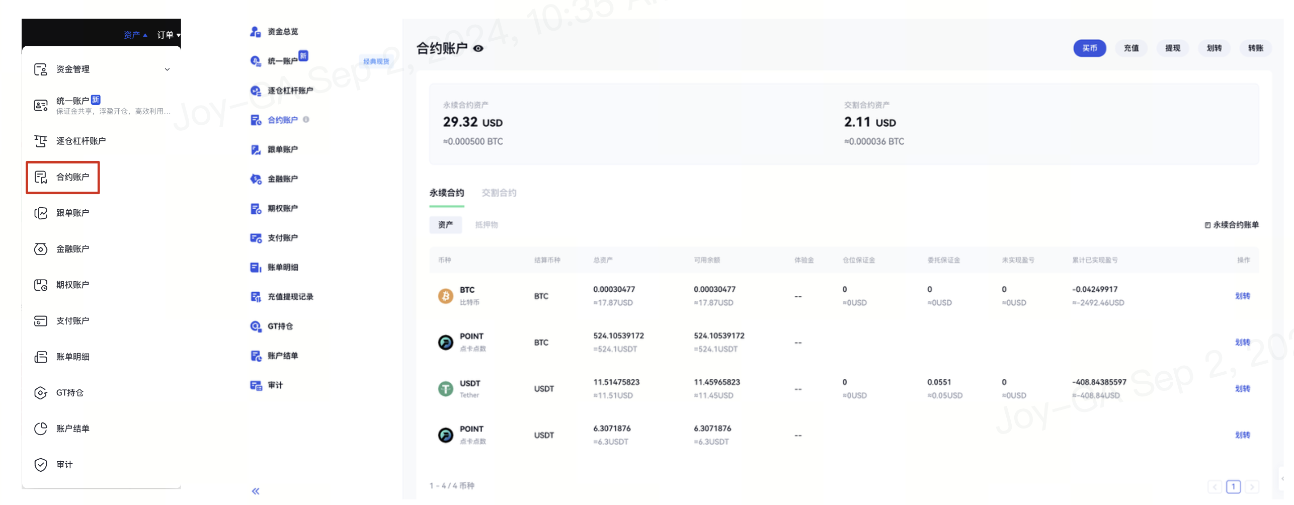 如何查看和劃轉合約賬戶資金
