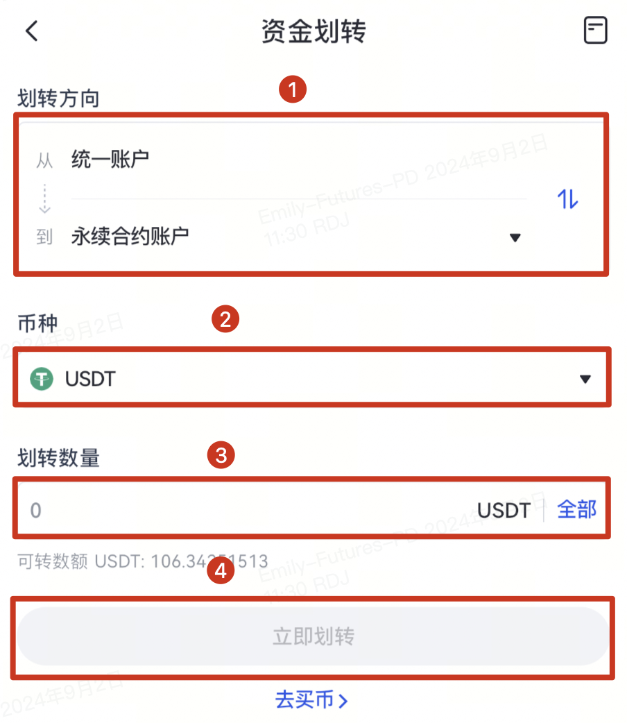 ①選擇要劃轉的賬戶;