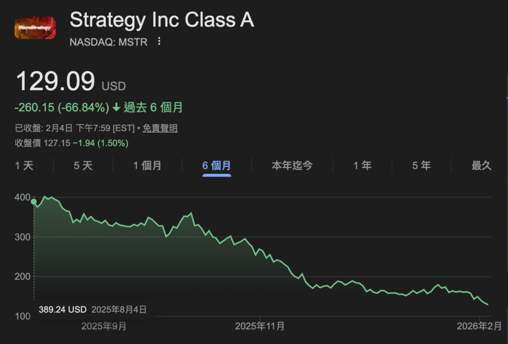 不過市場仍存在隱憂,Strategy 股價過去半年已從峰值修正約 66%、過去一年表現甚至遜於標普 500 指數。對於該公司未來的融資能力帶來的壓力正逐漸加大。