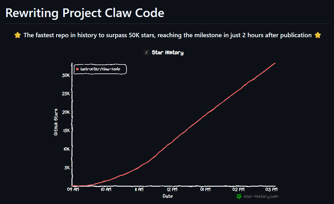 Anthropic 旗下頗受歡迎的 AI 寫程式工具 Claude Code,在最近 24 小時內發生原始碼意外洩漏的事件,有韓國開發者迅速「移植」重寫成 Python 版本並開源,竟成為 GitHub 上最快獲得 5 萬顆星星的專案。