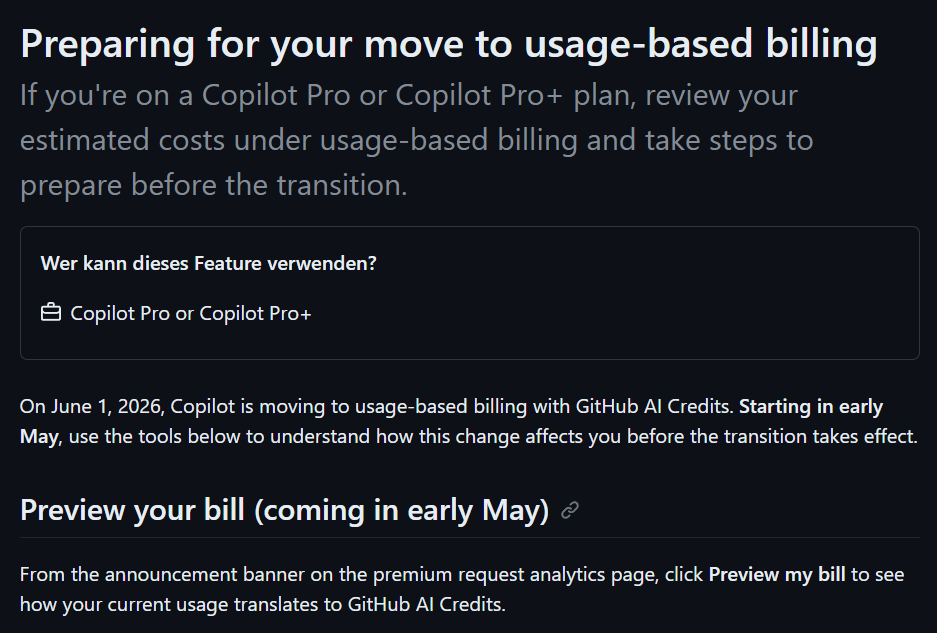 早在 4 月 20 日,GitHub Copilot 就開始針對個人訂閱方案做出調整, 包括暫停 GitHub Copilot Pro、Pro+、學生方案的新用戶註冊,還有收緊個人方案的使用限制等等。