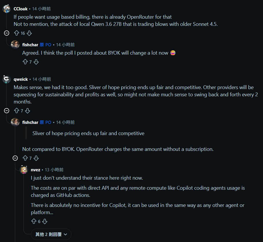 不意外的是,GitHub Copilot 的收費變動在 Reddit 論壇引發許多反彈。