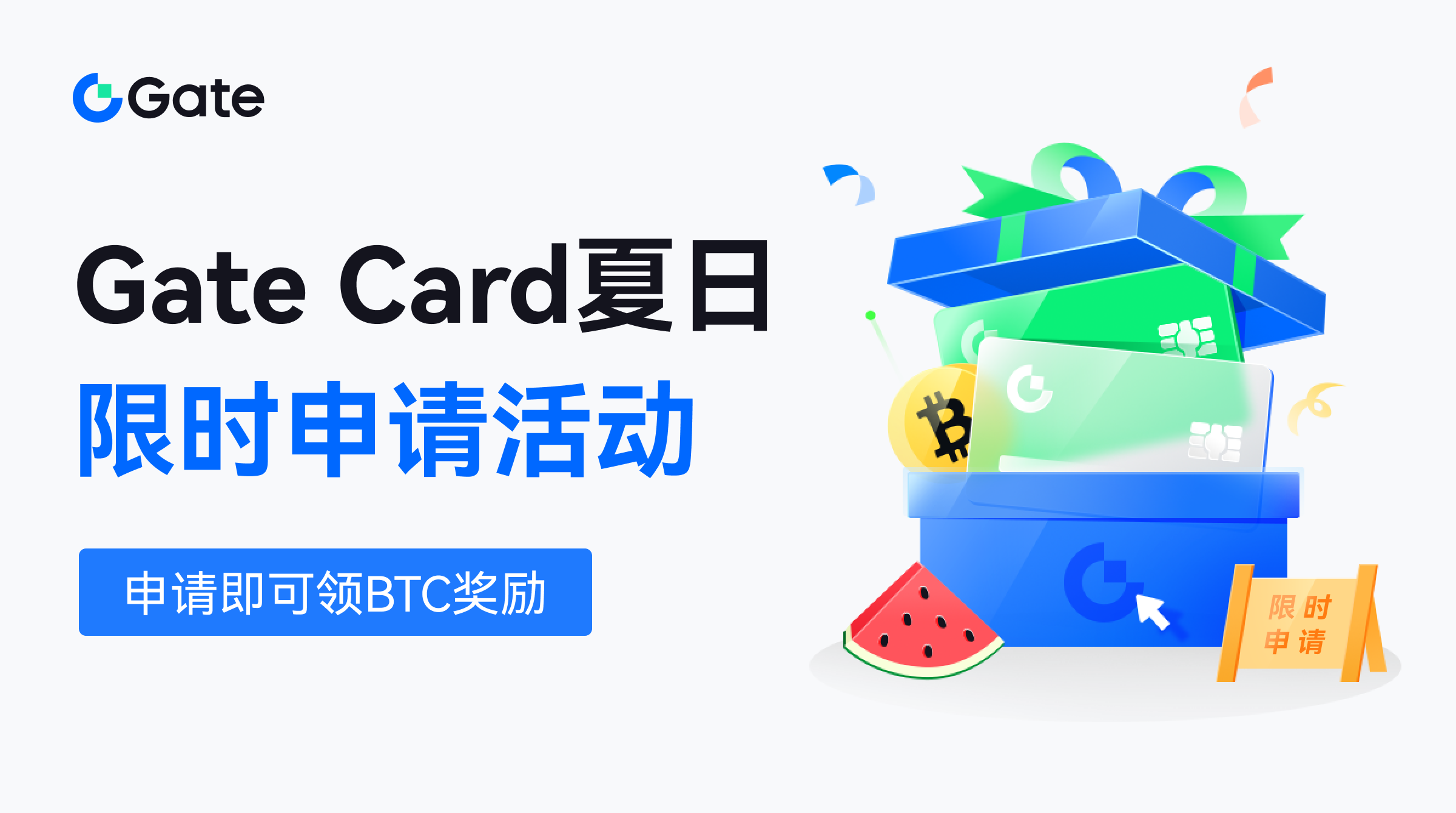 在 Gate 申请Gate Card,活动期间成功申请即可领取BTC现金奖励;Gate Card现有用户首次充值,也可参与BTC返现!