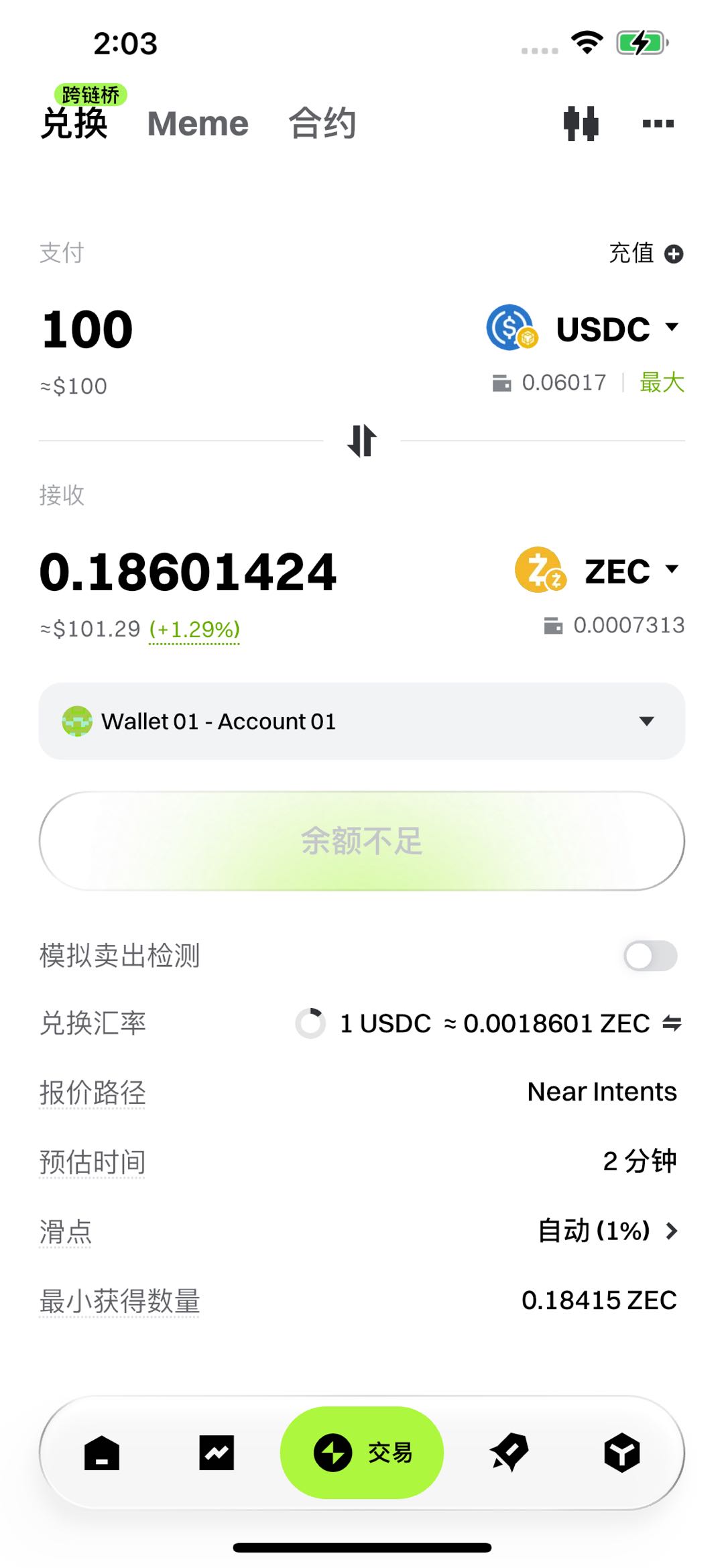 • 统一入口: 系统自动识别目标资产,无论是同链置换还是跨链转移,均通过单一入口完成。